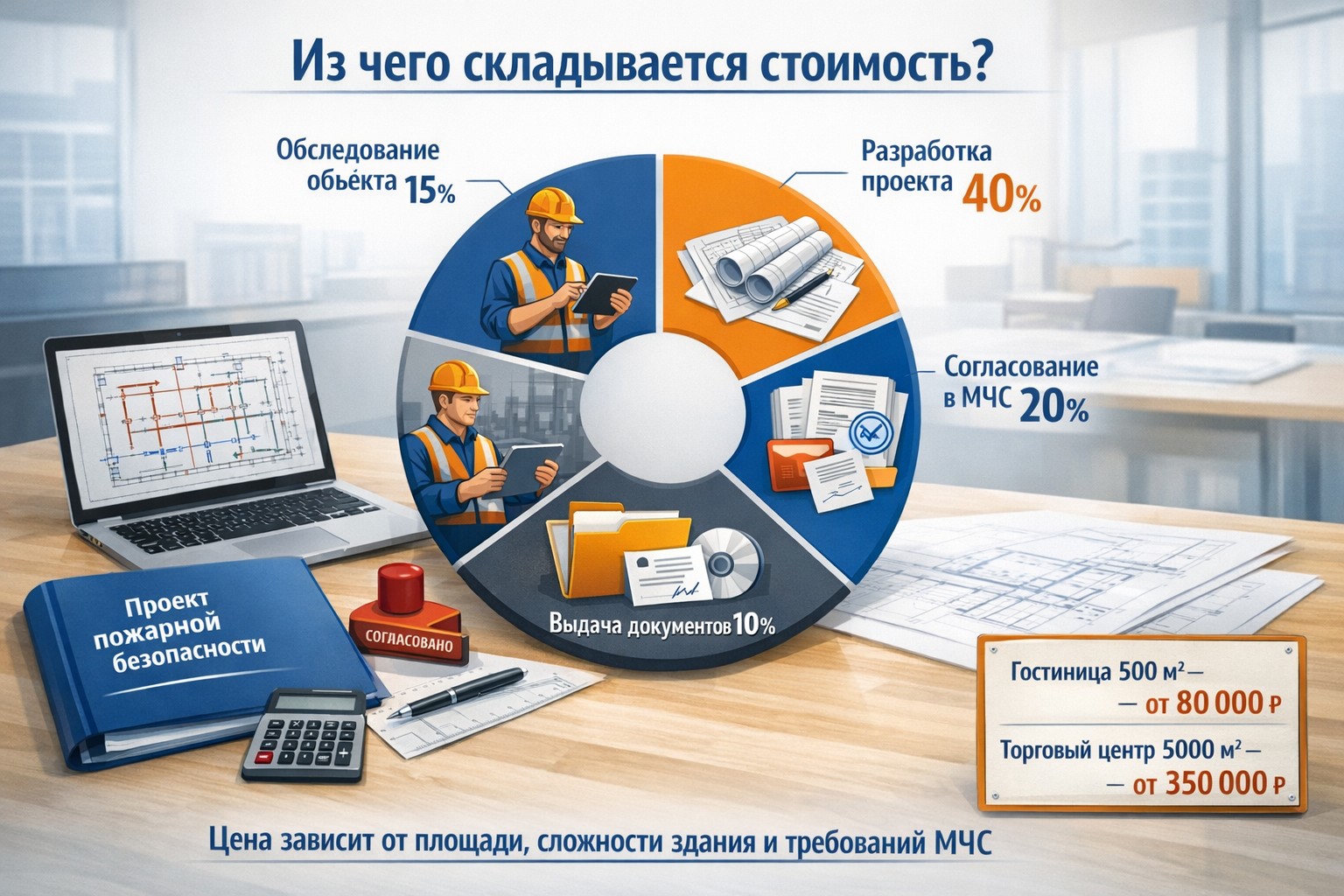 На цену влияет ВСЁ: этажность, наличие атриумов, специфика помещений, материалы отделки. Но важно помнить: стоимость проектирования и монтажа – это капля в море по сравнению с убытками от пожара или размером штрафов за его отсутствие (до 200 тыс. руб. + приостановка деятельности на 90 суток).
